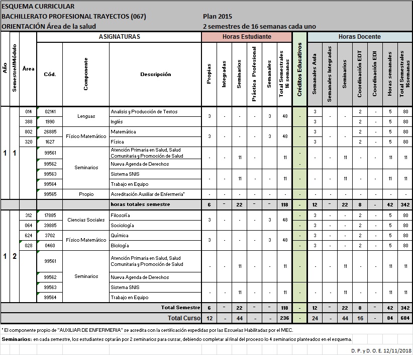 Enfermería habilitadas por el MEC. |